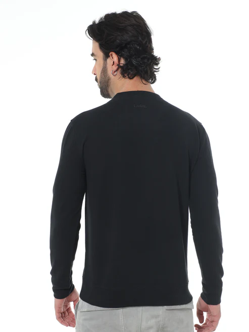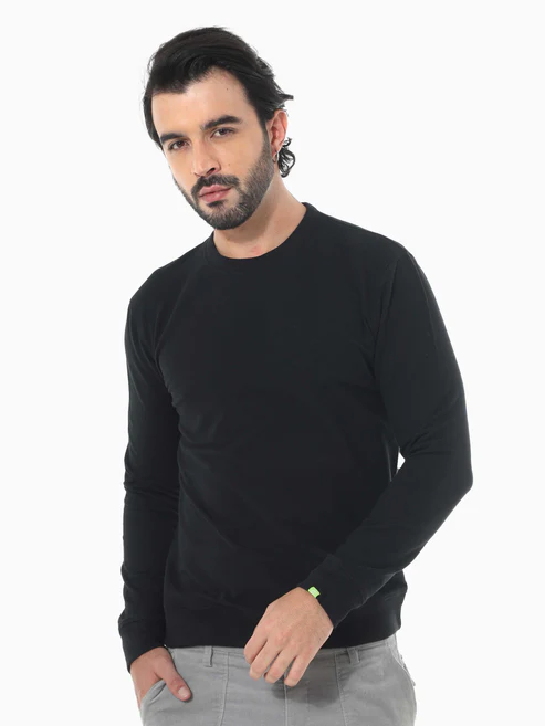 The relaxed fit, full sleeves, and breathable material ensure all-season comfort, whether worn for work, travel, or casual outings. With its timeless styling and clean finish, this sweatshirt delivers a modern look that suits every wardrobe. Available in Black, Charcoal Melange, and Navy Blue, it is the perfect blend of sustainability, comfort, and everyday versatility-created to feel good, look good, and do good for the environment.