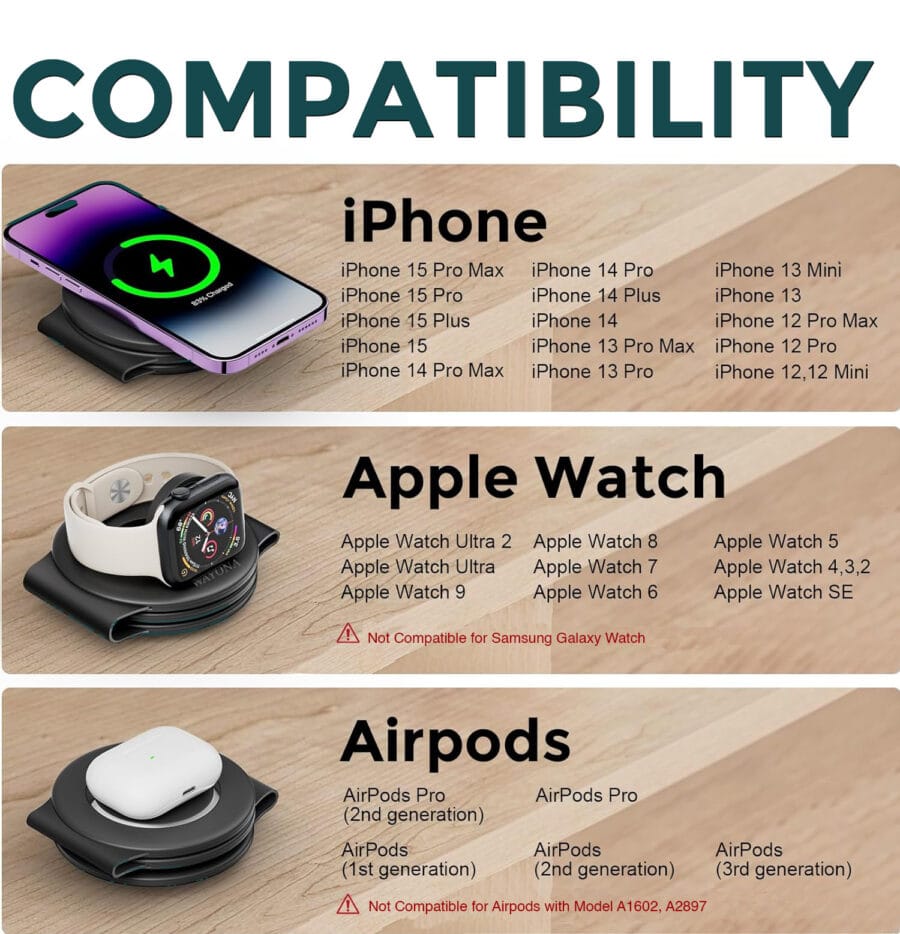 - Portable Design : Soft silicone allows the charging pad for smooth 180°folding, doubles as a phone stand in seconds. It is super slim and compact to fold, Wayona’s small portable wireless charger is designed for apple accessories and travel essentials.