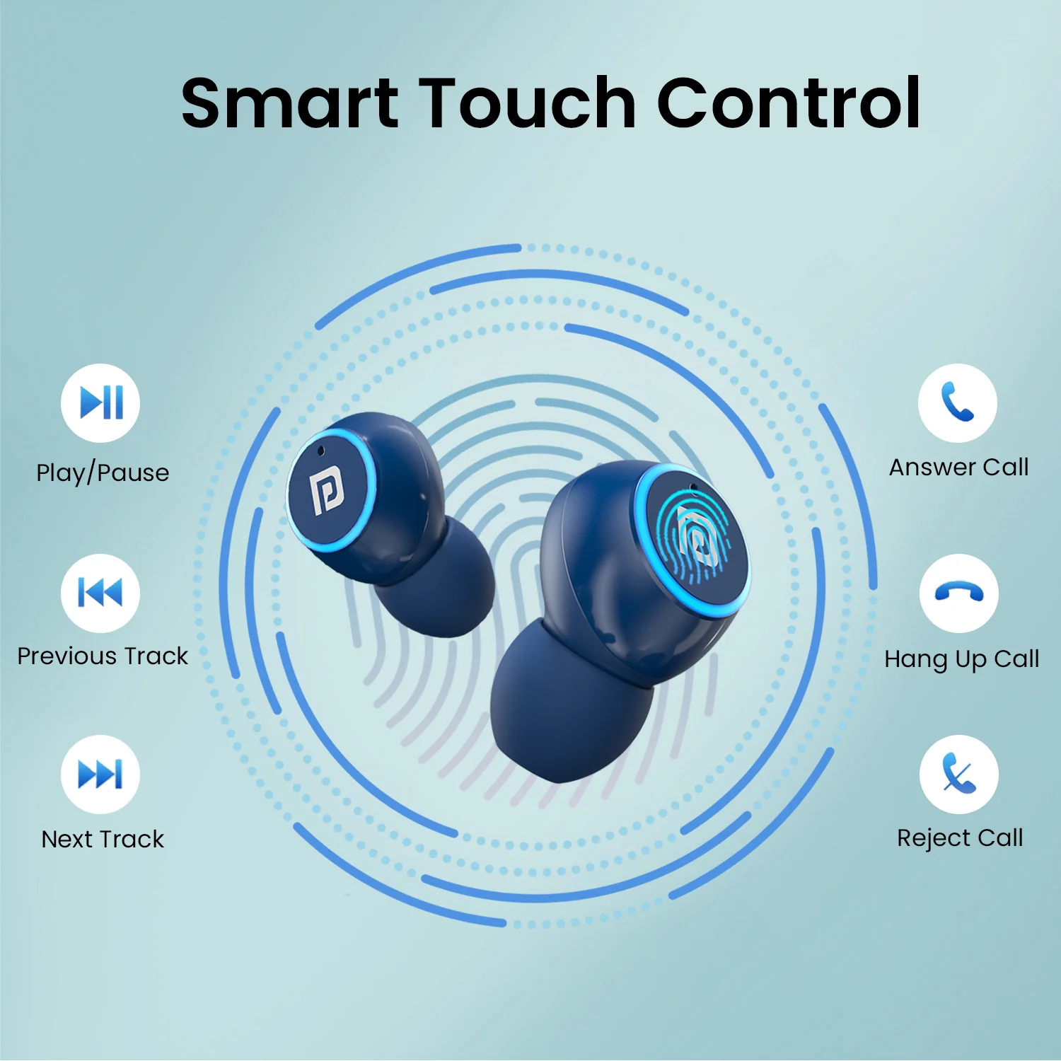 Smart touch controls for music, calls & voice assistant