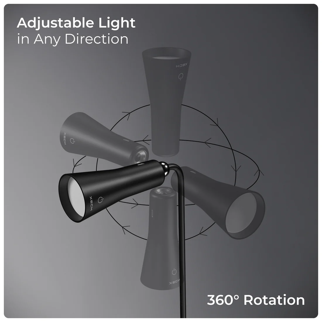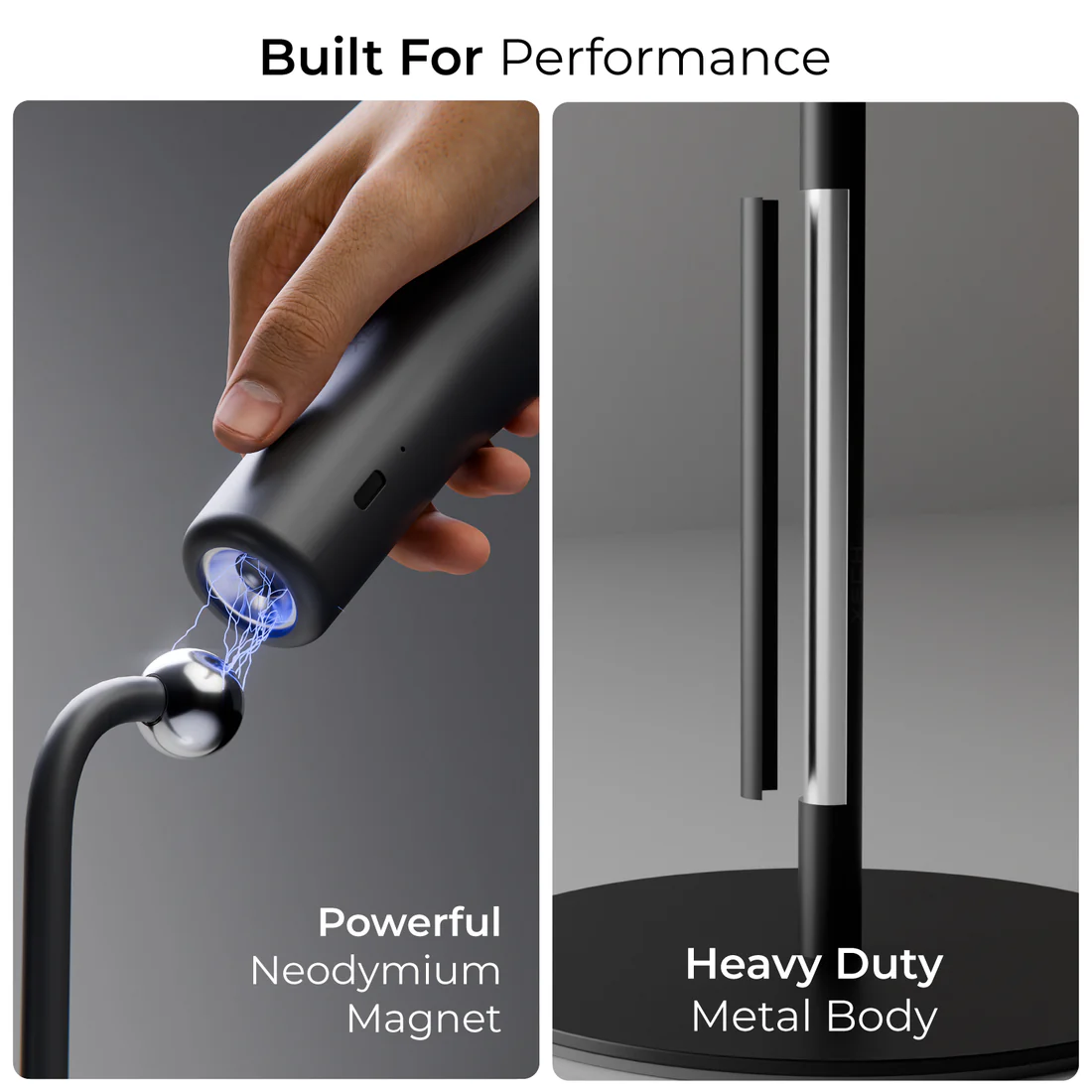 Magnetic Lamp Head – Attach to metal surfaces or use with the included base.