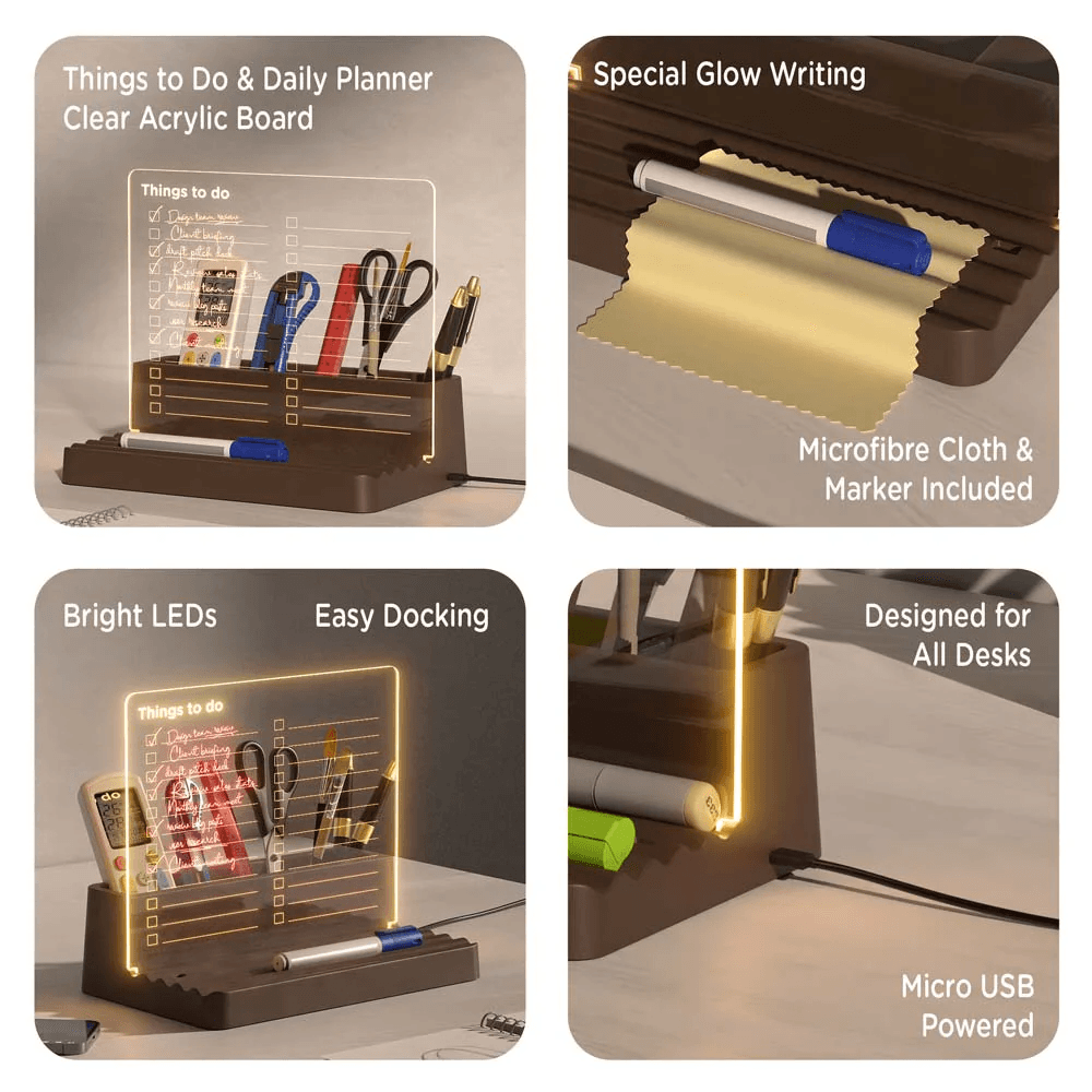 Introducing To-Do List Desk Organizer, your perfect companion for a productive and clutter-free workspace. Designed with a To-Do List Planner layout, this LED desk organizer ensures your daily goals stay in sight while keeping your desk essentials neatly arranged.