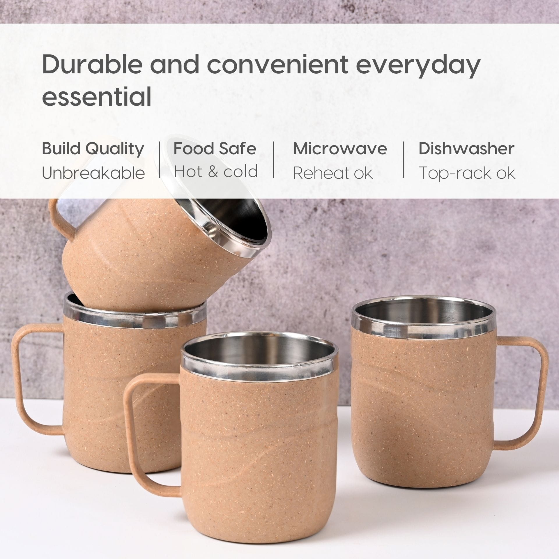 The WaveSteel Insulated Coffee Mug Set of 4 is thoughtfully crafted for people who love their beverages at the ideal temperature. Made from high-quality food-grade stainless steel, each mug features double-wall insulation that keeps your drinks hot or cold for extended periods.