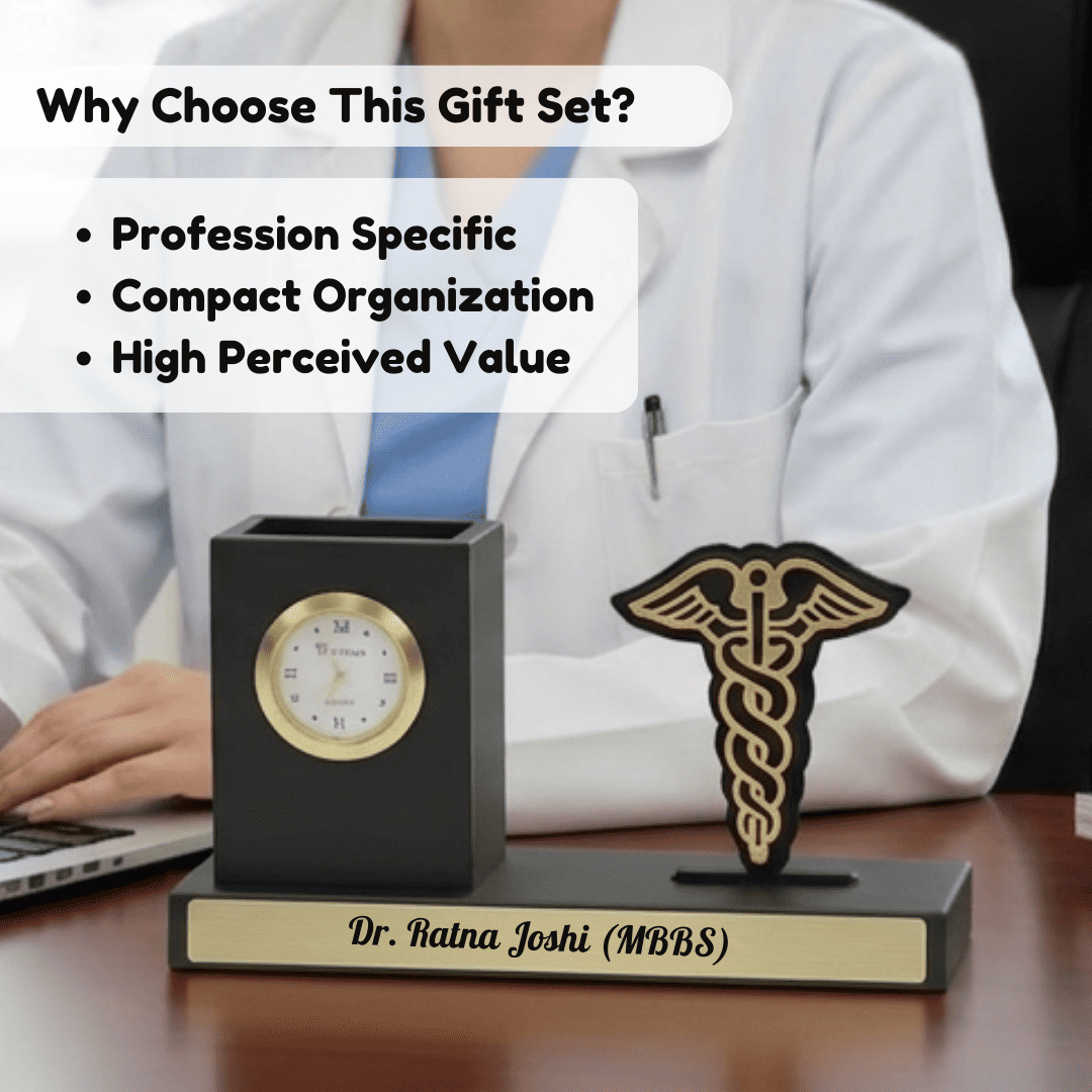 With customization and branding options available, this doctor desk organizer gift can be engraved with names, designations, or company branding, making it ideal for bulk corporate gifting. It is widely used for doctor appreciation gifts, employee onboarding kits, medical conferences, and healthcare corporate gifting programs.