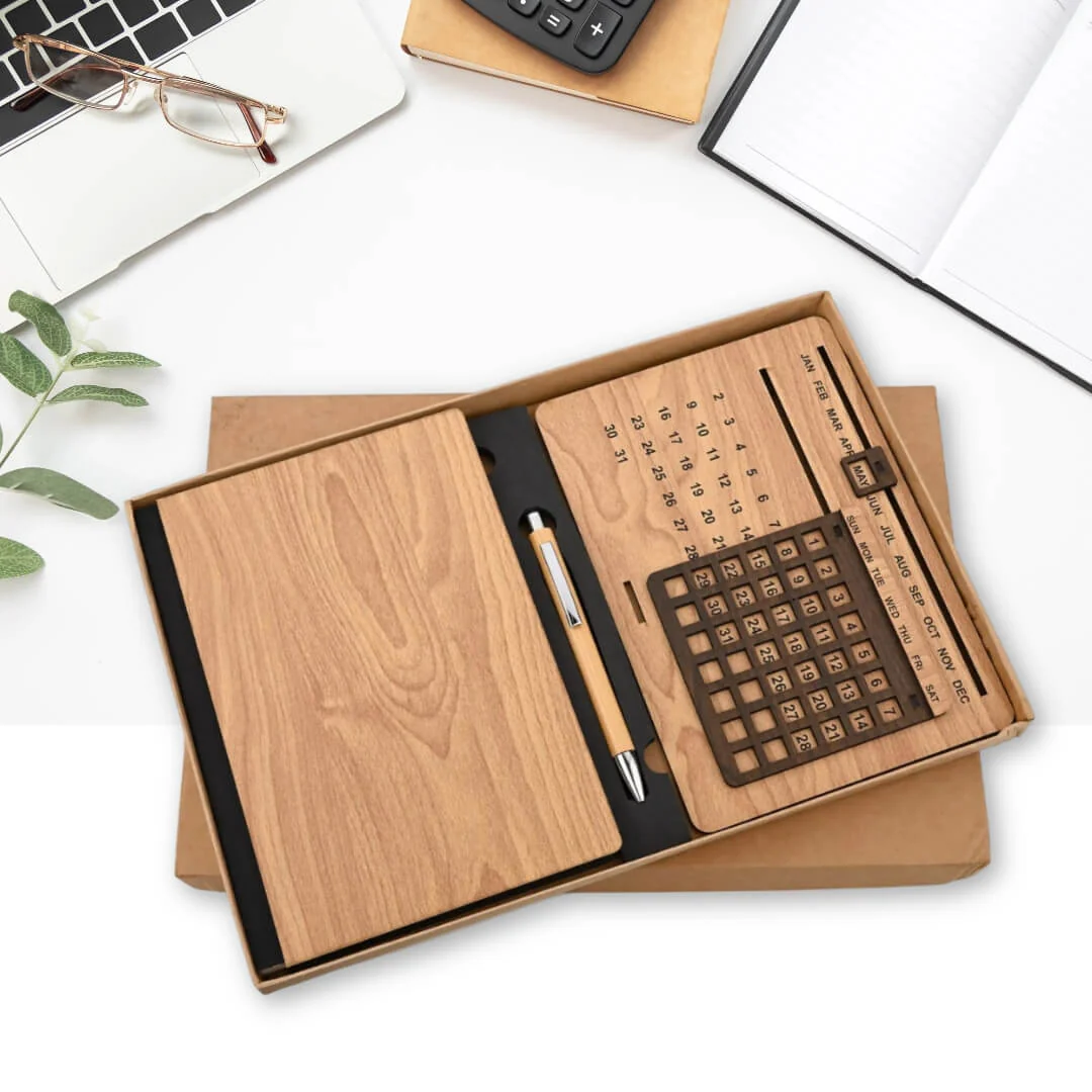 Giftana Wooden Diary with Pen and Lifetime Calendar Desk Gift Set 03