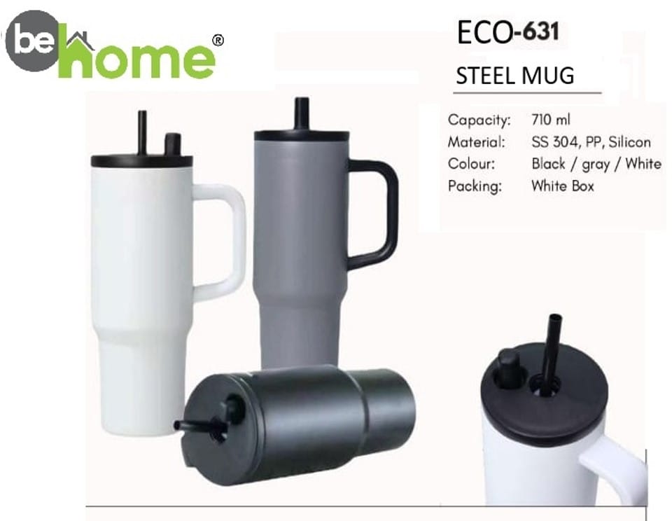 The behome ECO-631 Steel Mug is a large-capacity, stylish, and functional drinkware option designed for daily use. With a 710 ml capacity, it is perfect for tea, coffee, water, juices, and other beverages—suitable for home, office, or travel.