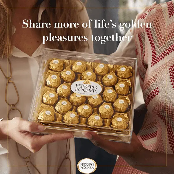 Make every occasion unforgettable with the Ferrero Rocher Gift Box (24 Pieces) — a timeless symbol of affection, generosity, and luxury. Each chocolate blends a roasted hazelnut core with smooth chocolate cream and a delicate wafer shell, wrapped in Ferrero’s iconic golden foil. Perfect for sharing with loved ones or gifting on special occasions.