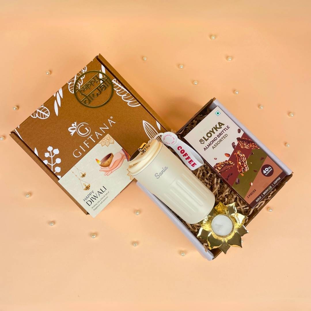 GiftanaIndia offers logo branding on the tumbler, personalized greeting cards, and eco-conscious bulk packaging for professional Diwali gifting.