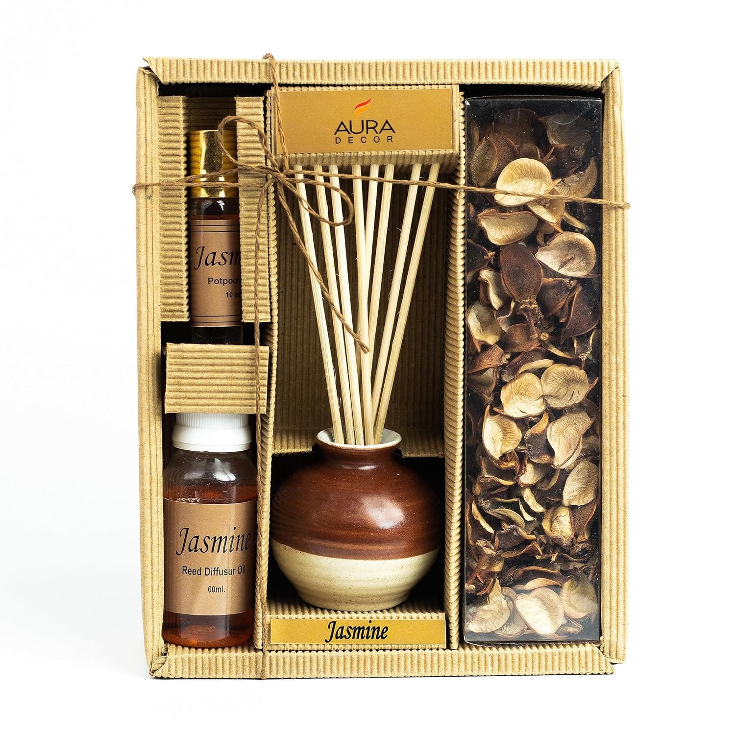 The Aroma Reed Diffuser & Potpourri Gift Set is a beautifully curated home-fragrance kit designed to elevate any living space with natural aromas and elegant décor elements.