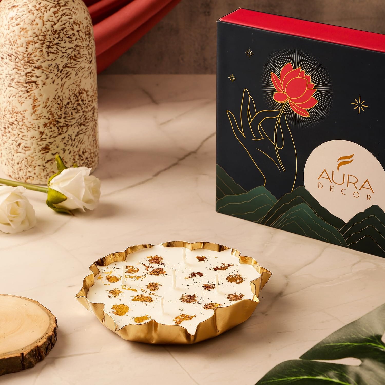 The Lotus Urli Gift Set is a stunning décor centerpiece inspired by traditional Indian artistry. Designed in a graceful lotus shape, this urli adds charm and serenity to any space—whether it’s a living room, entryway, pooja room, or office reception.