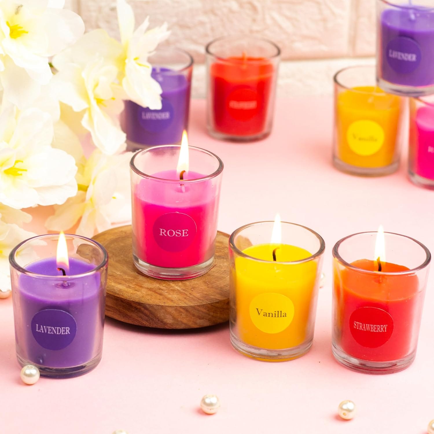 The Fragrance Votive Glass Candle Set (12-Pack) is designed to elevate any space with soothing aromas and a warm, inviting glow. Each candle comes in a high-quality glass votive, offering a clean and consistent burn while enhancing the aesthetic of your room. This set includes 12 assorted fragrances, making it ideal for gifting during festivals, corporate events, weddings, or as a personal indulgence for relaxation and aromatherapy.