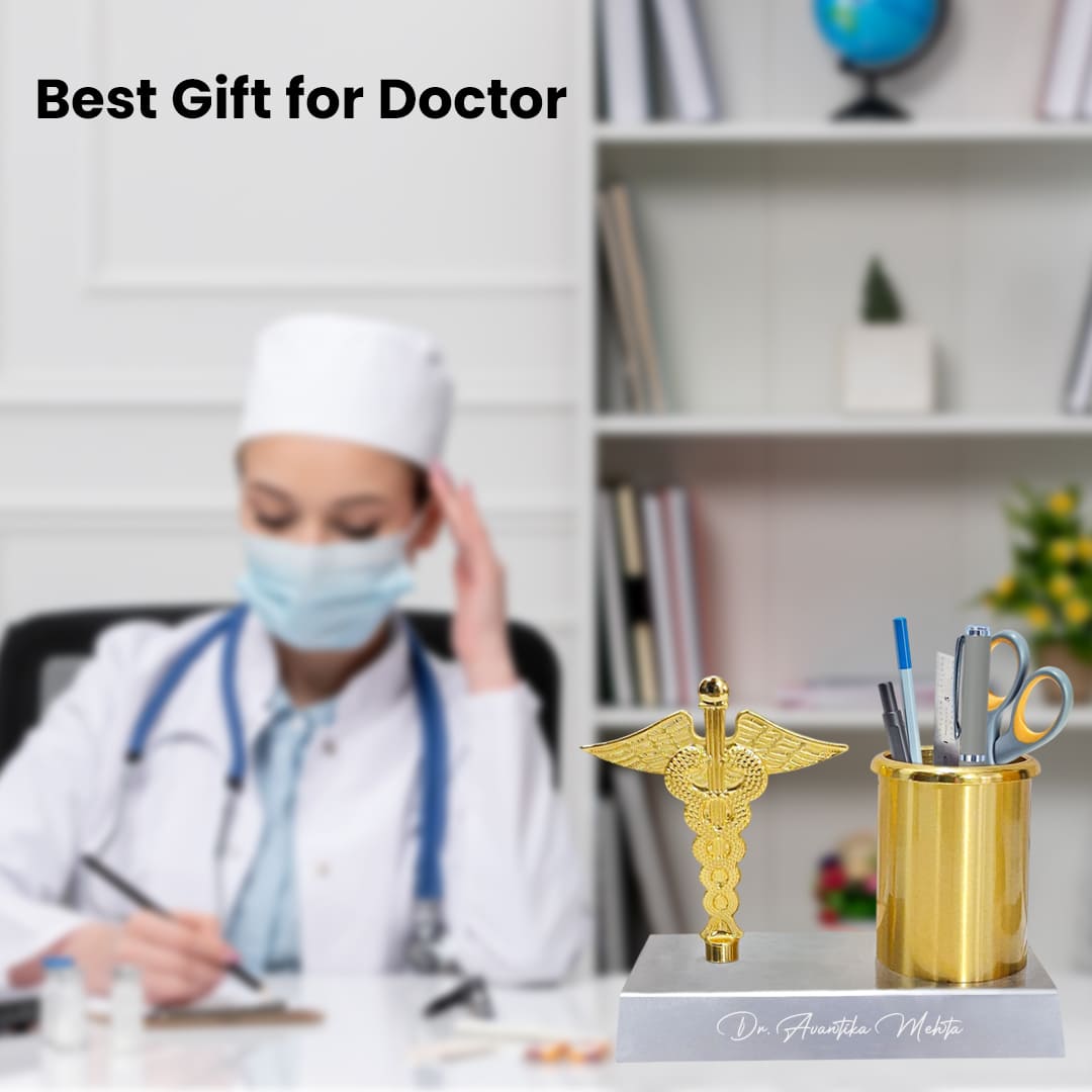 Corporate Gift that stands out – the Personalized Doctor Pen Stand is a thoughtful blend of functionality and appreciation. Crafted especially for medical professionals, this custom pen holder adds a personal touch to any doctor’s desk.Whether it’s for a medical conference, clinic inauguration, or a healthcare appreciation event, this elegant accessory not only holds pens but also symbolizes pride and recognition.
