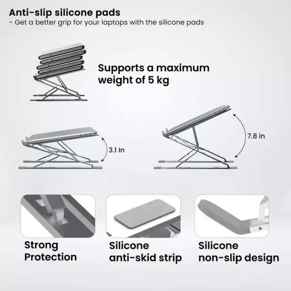 My Buddy K Pro Portronics Laptop Stand is not only functional but also stylish. Its sleek silver color and modern design make it the perfect addition to any workspace. Plus, with a 12-month warranty, you can rest assured that your purchase is protected.