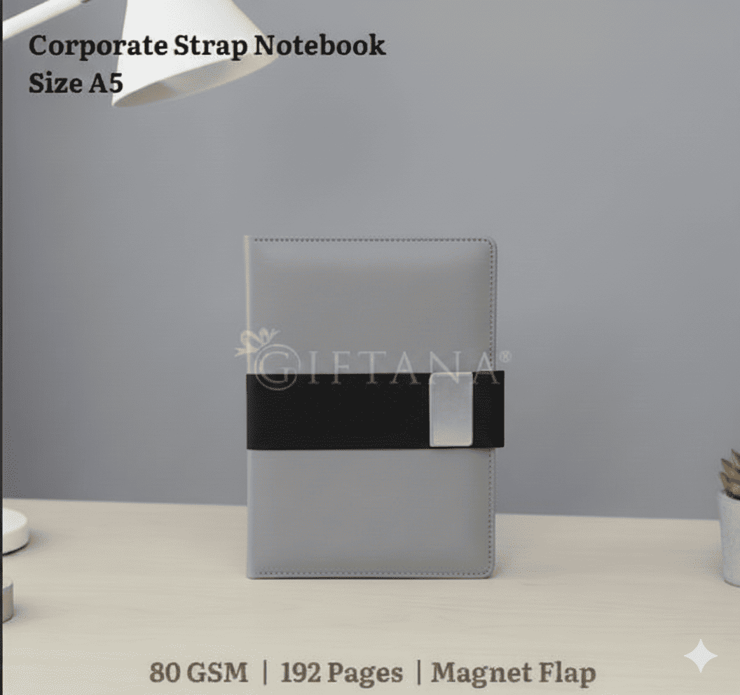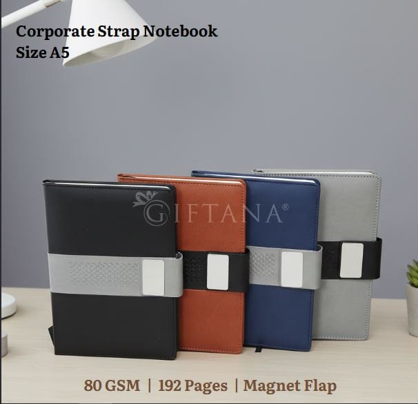 The Corporate Strap Notebook Diary is designed for modern professionals who value a blend of functionality, durability, and executive styling. Built with a premium PU cover and an innovative strap closure, this diary ensures secure handling while maintaining a clean corporate appearance. The magnetic strap adds convenience, keeping notes protected throughout daily office routines. Equipped with 192 high-quality 80 GSM pages, it supports smooth, consistent writing suitable for meetings, planning, documentation, and client interactions.