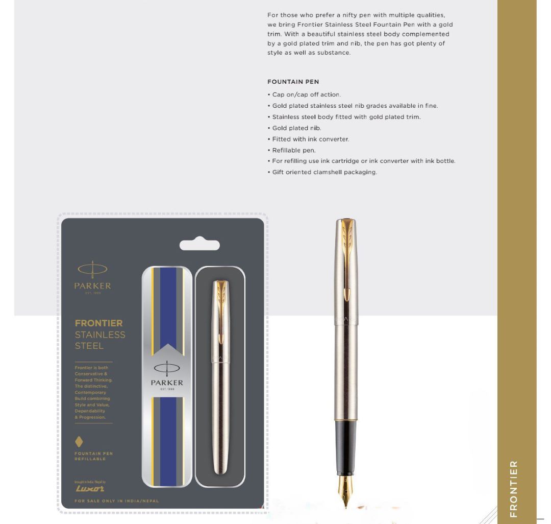 With its refillable construction and gift-oriented clamshell presentation, the Frontier Stainless Steel Fountain Pen is ideal for corporate gifting, leadership recognition programs, onboarding kits, and premium office stationery assortments. It reflects brand value while meeting functional writing needs in professional environments.
