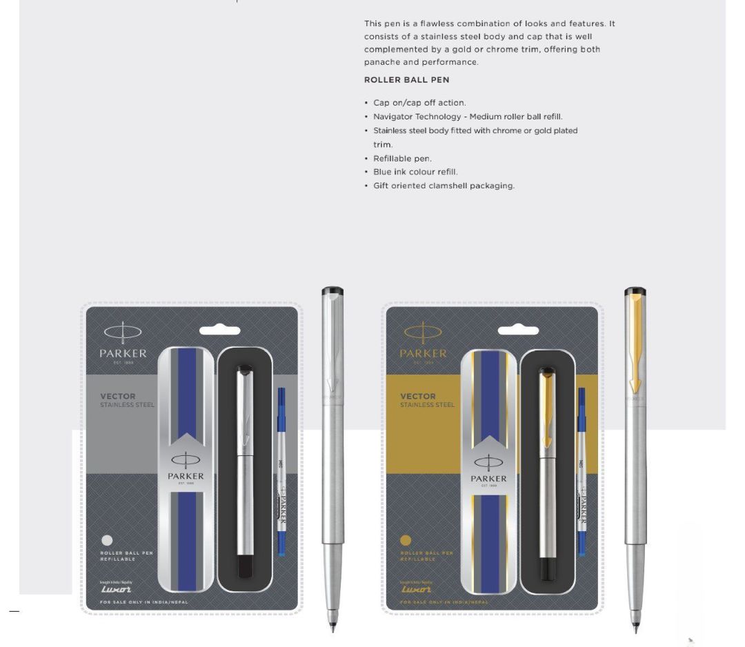 The Parker Vector Stainless Steel Roller Ball Pen is designed for professionals seeking durability, performance, and premium aesthetics in everyday writing instruments. Crafted with a full stainless steel body and cap, this roller ball pen combines strength with refined styling for long-term office and business use.