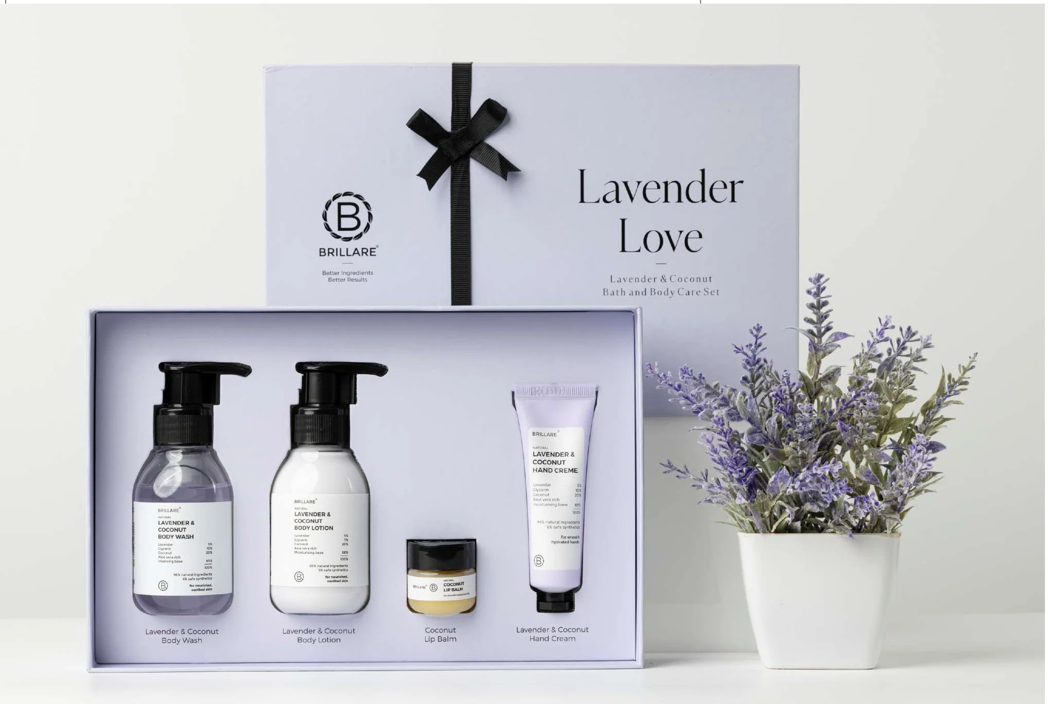 - Lavender & Coconut Body Wash: Gently cleanses the skin while removing impurities and leaving it fresh and soft.