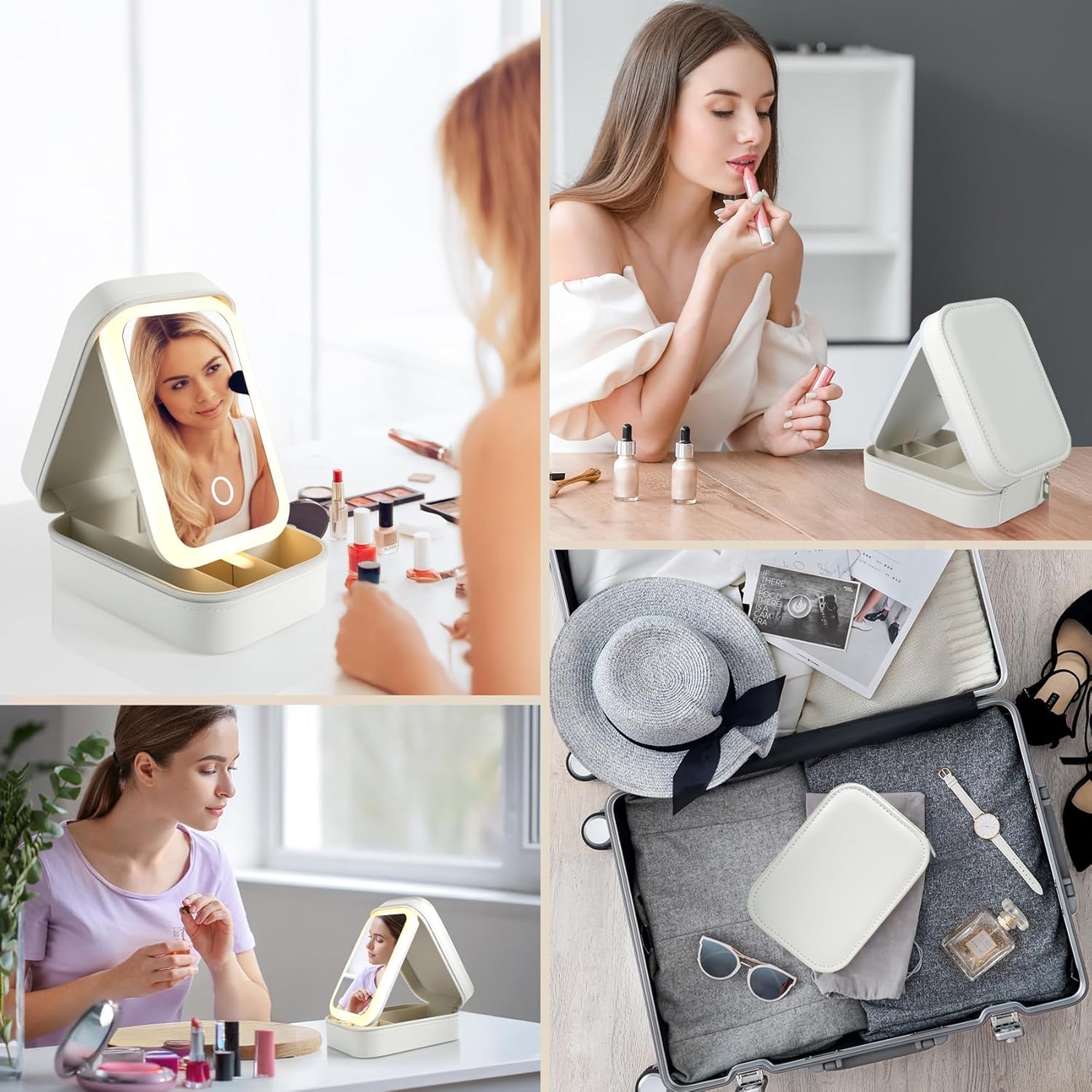 - LED Touch Mirror: Built-in LED mirror with touch control for easy lighting while doing makeup or wearing jewelry.