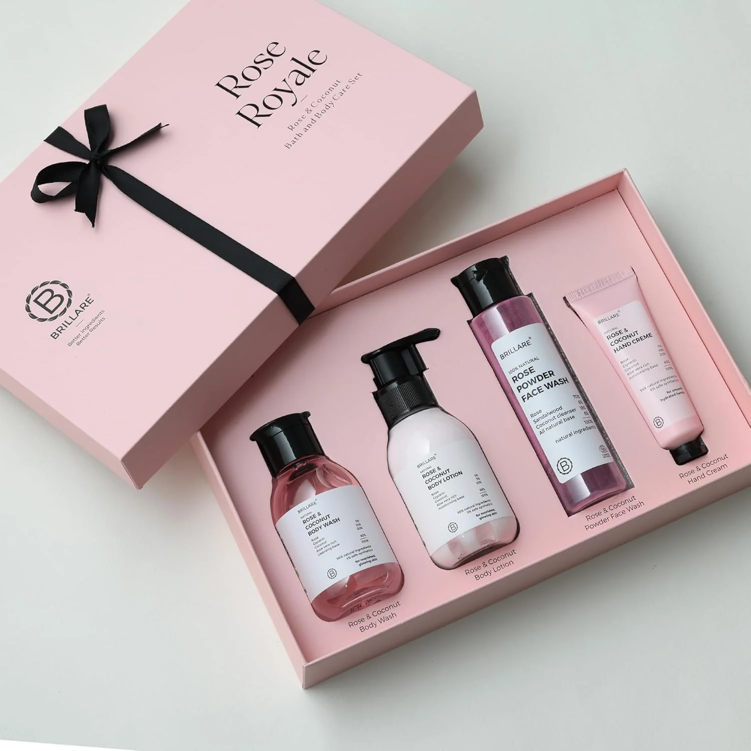 - Rose & Coconut Body Wash: Gently cleanses the skin while removing impurities and leaving it fresh and soft.
